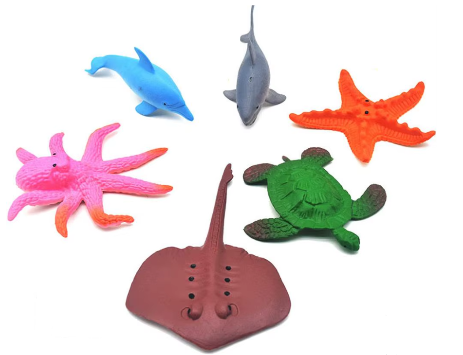 Bichinho aquático Grow Toy, que cresce de tamanho em até 200% quando colocado na água. Se retirado da água, gradativamente volta ao tamanho normal. Disponível nos modelos: Tartatuga, Raia, Estrela-do-Mar, Tubarão, Golfinho, Polvo.