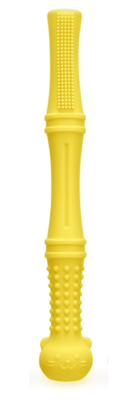 Com diferentes relevos e texturas, o mordedor proporciona alívio suave para as gengivas e estimula o treino mastigatório, favorecendo a conscientização oral e o fortalecimento dos músculos da boca. Seu formato alongado e leve facilita o manuseio pelas pequenas mãos, incentivando o autocuidado e a exploração sensorial desde cedo.
