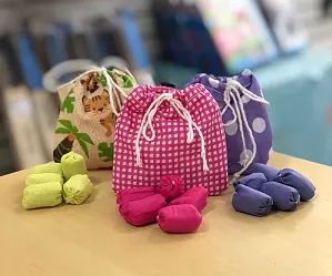 • Material: tecido (saquinhos em algodão)